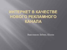 ИНТЕРНЕТ В КАЧЕСТВЕ НОВОГО РЕКЛАМНОГО КАНАЛА Выполнили Бабаев