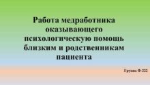 Работа медработника оказывающего психологическую помощь близким и родственникам