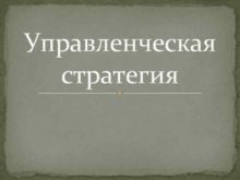 Управленческая стратегия Управленческая стратегия состоит из Стратегии