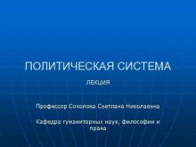 ПОЛИТИЧЕСКАЯ СИСТЕМА ЛЕКЦИЯ Профессор Соколова Светлана Николаевна Кафедра