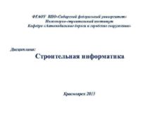 ФГАОУ ВПО Сибирский федеральный университет Инженерно-строительный институт Кафедра