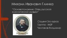 Михаил Иванович Глинка Основоположник Отец русской классической музыки