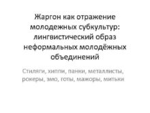 Жаргон как отражение молодежных субкультур лингвистический образ неформальных