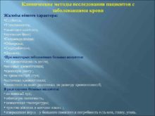 Клинические методы исследования пациентов с заболеваниями крови Жалобы