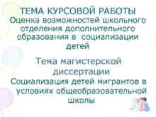 ТЕМА КУРСОВОЙ РАБОТЫ Оценка возможностей школьного отделения дополнительного