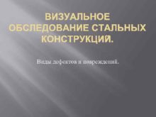ВИЗУАЛЬНОЕ ОБСЛЕДОВАНИЕ СТАЛЬНЫХ КОНСТРУКЦИЙ Виды дефектов и повреждений
