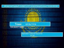 МЕЖДУНАРОДНЫЙ УНИВЕРСИТЕТ ИНФОРМАЦИОННЫХ ТЕХНОЛОГИИ Тема КУЛЬТУРА КАЗАХСТАНА Выполнил