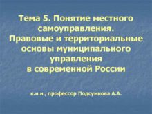 Тема 5 Понятие местного самоуправления Правовые и территориальные