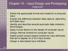 Chapter 16 Input Design and Prototyping Objectives