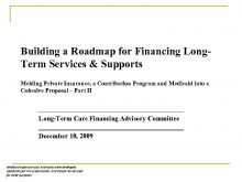 Building a Roadmap for Financing Long Term Services