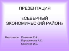 ПРЕЗЕНТАЦИЯ СЕВЕРНЫЙ ЭКОНОМИЧЕСКИЙ РАЙОН Выполнили Полякова Е А