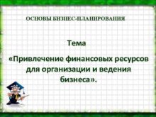 ОСНОВЫ БИЗНЕС-ПЛАНИРОВАНИЯ Тема Привлечение финансовых ресурсов для организации