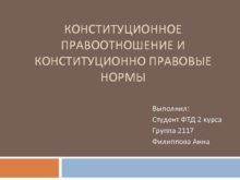 КОНСТИТУЦИОННОЕ ПРАВООТНОШЕНИЕ И КОНСТИТУЦИОННО ПРАВОВЫЕ НОРМЫ Выполнил Студент