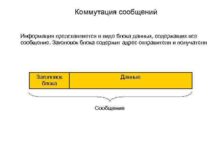 Коммутация сообщений Информация представляется в виде блока данных