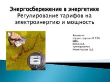 Энергосбережение в энергетике Регулирование тарифов на электроэнергию и
