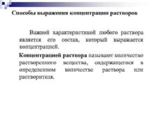 Способы выражения концентрации растворов Важной характеристикой любого раствора