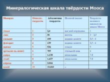 Минералогическая шкала твёрдости Мооса Минерал Относит твердость тальк
