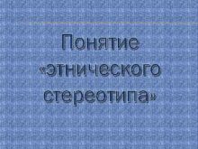 Понятие этнического стереотипа Стереотип — устойчивое эмоциональное