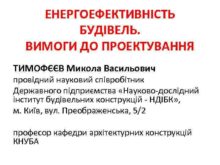 ЕНЕРГОЕФЕКТИВНІСТЬ БУДІВЕЛЬ ВИМОГИ ДО ПРОЕКТУВАННЯ ТИМОФЄЄВ Микола Васильович