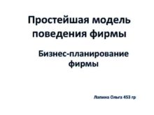 Простейшая модель поведения фирмы Бизнес-планирование фирмы Лапина Ольга