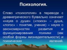 Психология Слово психология в переводе с древнегреческого буквально