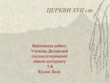 ЦЕРКВИ XVII ст Выполнила работу Ученица Долинской специализированой