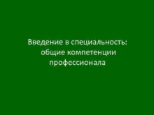 Введение в специальность общие компетенции профессионала Введение