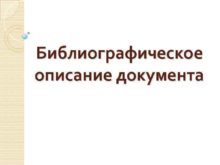 Библиографическое описание документа Библиографическое описание приведенное по