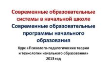 Современные образовательные системы в начальной школе Современные образовательные