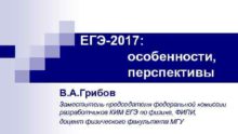 ЕГЭ-2017 особенности перспективы В А Грибов Заместитель председателя