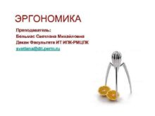 ЭРГОНОМИКА Преподаватель Бельмас Светлана Михайловна Декан Факультета ИТ