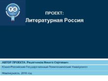 ПРОЕКТ Литературная Россия АВТОР ПРОЕКТА Решетников Никита Сергеевич
