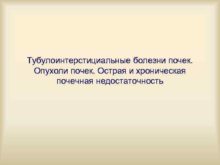 Тубулоинтерстициальные болезни почек Опухоли почек Острая и хроническая