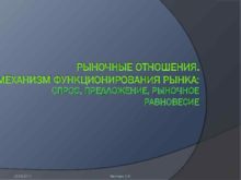 РЫНОЧНЫЕ ОТНОШЕНИЯ МЕХАНИЗМ ФУНКЦИОНИРОВАНИЯ РЫНКА СПРОС ПРЕДЛОЖЕНИЕ РЫНОЧНОЕ