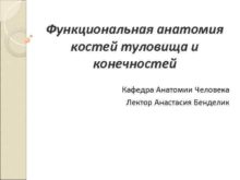 Функциональная анатомия костей туловища и конечностей Кафедра Анатомии