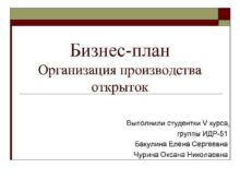 Бизнес-план Организация производства открыток Выполнили студентки V курса