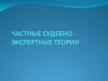 ЧАСТНЫЕ СУДЕБНОЭКСПЕРТНЫЕ ТЕОРИИ Формирование частных экспертных теорий
