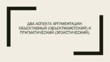 ДВА АСПЕКТА АРГУМЕНТАЦИИ ОБЪЕКТИВНЫЙ ОБЪЕКТИВИСТСКИЙ И ПРАГМАТИЧЕСКИЙ ЭГОИСТИЧЕСКИЙ