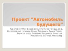 Проект Автомобиль будущего Куратор группы Безденежных Татьяна Геннадьевна