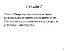 Лекция 7 Тема Микроорганизмы как агенты вызывающие геохимические