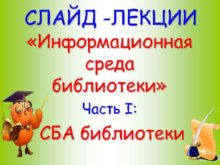 СЛАЙД -ЛЕКЦИИ Информационная среда библиотеки Часть I СБА