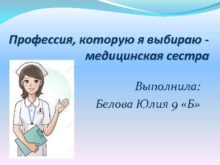 Профессия которую я выбираю медицинская сестра Выполнила Белова