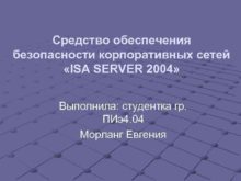 Средство обеспечения безопасности корпоративных сетей ISA SERVER 2004