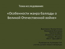 Тема исследования Особенности жанра баллады о Великой Отечественной