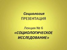 Социология ПРЕЗЕНТАЦИЯ Лекция 6 СОЦИОЛОГИЧЕСКОЕ ИССЛЕДОВАНИЕ