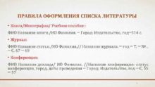 ПРАВИЛА ОФОРМЛЕНИЯ СПИСКА ЛИТЕРАТУРЫ Книга Монография Учебное пособие