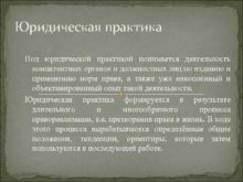Юридическая практика Под юридической практикой понимается деятельность компетентных