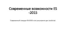 Современные возможности ES -2015 Современный стандарт ES-2015 и