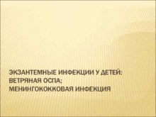 ЭКЗАНТЕМНЫЕ ИНФЕКЦИИ У ДЕТЕЙ ВЕТРЯНАЯ ОСПА МЕНИНГОКОККОВАЯ ИНФЕКЦИЯ