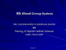 Rh Blood Group System DR MOHAMMED H SAIEMALDAHR